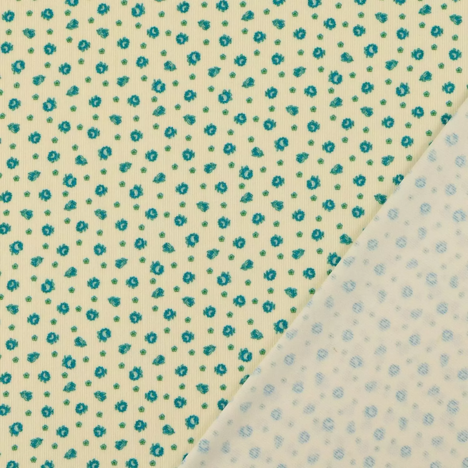 Babycord blomster, dark mint
