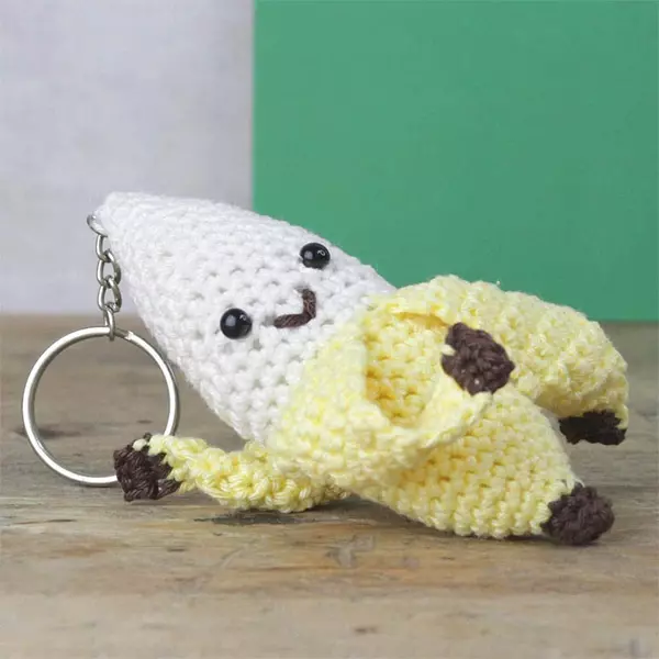 Heklesettet inneholder alt du trenger for å lage din egen «Banana»-nøkkelring!